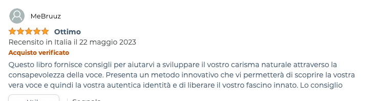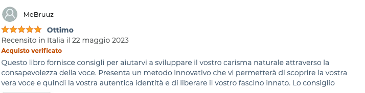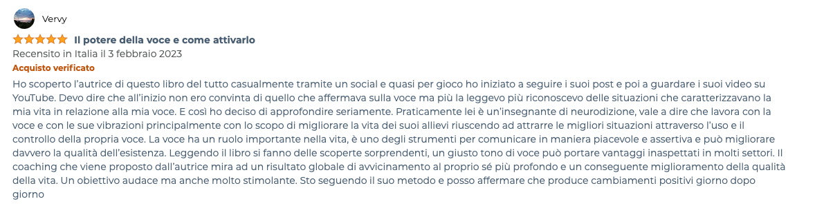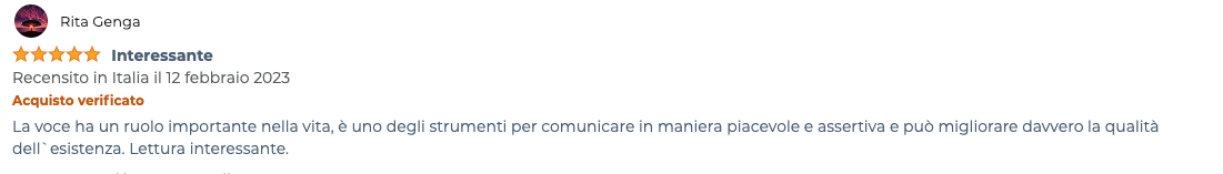 Questo libro nasce con l’idea di trasferire al lettore preziose informazioni riguardo il ruolo determinante della voce nella vita; infatti una bella voce può cambiarti davvero la tua esistenza. Attraverso questo libro scoprirai come la voce, sì proprio la Tua Voce, può fare la differenza nell’attivare e potenziare la Legge Di Attrazione e Vibrazione, per plasmare il tuo futuro nella direzione che hai scelto.