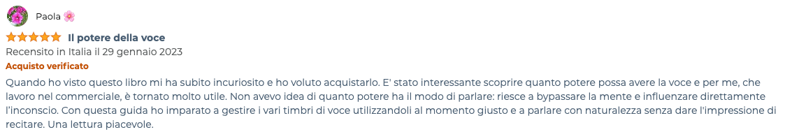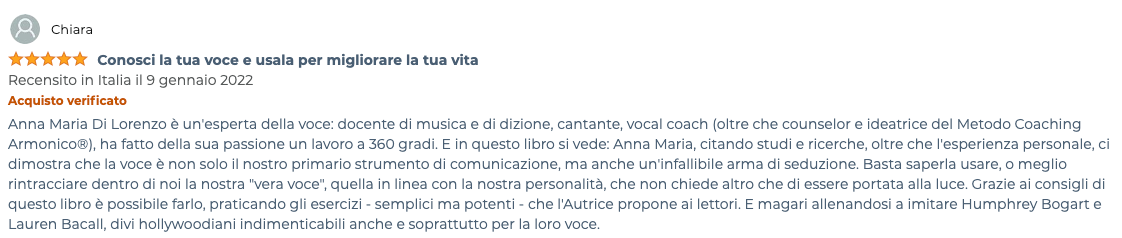 Sì, perché la voce, ci dice subito Anna Maria Di Lorenzo nel suo libro – il cui sottotitolo, non a caso, è Come usare la voce nella seduzione per aumentare il tuo fascino e raggiungere i tuoi obiettivi. Il potere della voce e del linguaggio del corpo nella comunicazione assertiva – è la nostra principale arma di seduzione.